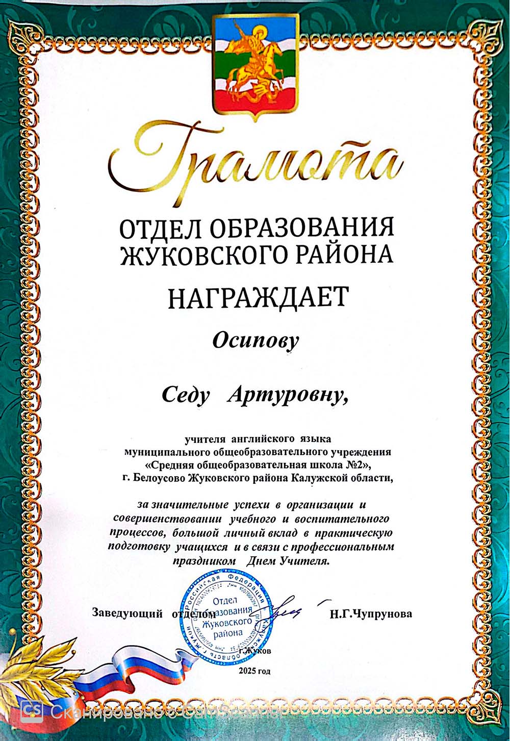 Я — учитель английского языка в школе города Белоусово. Моя профессия — это не просто работа, это моё призвание и огромная страсть.